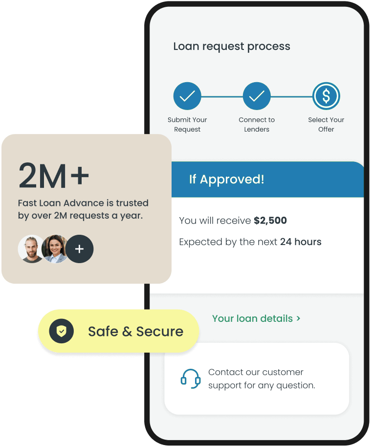 Annual Percentage Rate (APR) is a measure of the cost of credit, expressed as a nominal yearly rate. It relates to the amount and timing of value received by the consumer to the amount and timing of payments made. Fast Loan Advance cannot guarantee any APR since we are not a lender ourselves. Annual Percentage Rates (APR) start from 5.99% up to a maximum of 35.99%. Personal loans have a 91-day minimum repayment period and a 72-month maximum repayment period. Before accepting a loan from a lender within our network, please read the loan agreement carefully as the APR and repayment terms may differ from what is listed on this site.